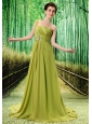 Pink dresses are quite lovely! This pretty prom dress is one example of how fabulous pink can be. It features a fancy ruched bodice with straps and sweetheart bustline. Encrusted with shining beads, the mid section of the bodice accented. The flowy floor length skirt gives a flowing and airy fall to the floor, which moves beautifully with you when you walk. Just a lovely gown for any occasion or event.