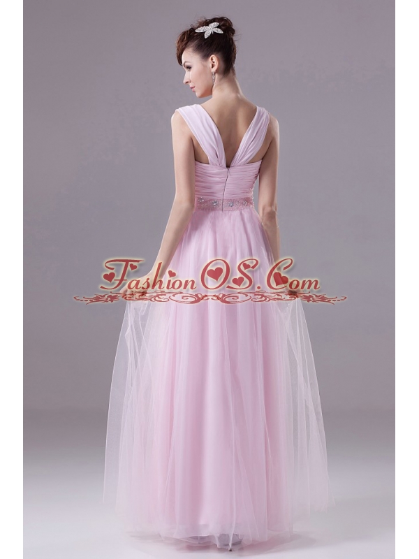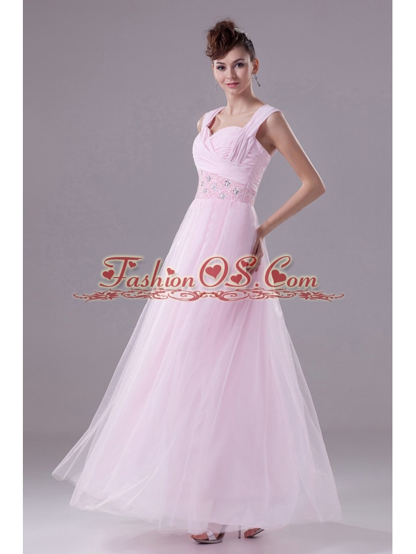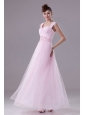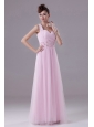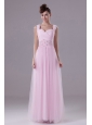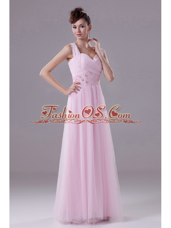 Pink Custom Made Prom Dress With Square Beading Tulle and Floor-length