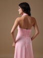 Home >  Prom Dresses >  Modest Prom Dresses > Pink Empire Halter Brush Train Chiffon Ruch Prom Dress