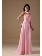 Pink Empire Halter Brush Train Chiffon Ruch Prom Dress