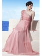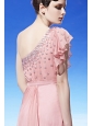 Pink Empire One Shoulder Floor-length Chiffon Beading Prom Dress