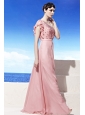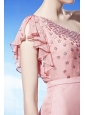 This baby pink prom dress will make you experience of being the spotlight any occasion you attend.The exquisite bodice is adorned with one flouncing sleeve and lovely scattered beadwork.The waisteband contures your natural figure and the floor-length skirt made from gorgeous chiffon fabric completes this fabulous dress.