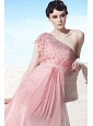 Home >  Prom Dresses >  Discount Prom Dresses > Pink Empire One Shoulder Floor-length Chiffon Beading Prom Dress