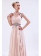 Pink Empire Straps Prom Dress Chiffon Beading Brush Train