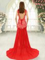 Pink Evening Dress Prom and Party with Lace Scoop Sleeveless Brush Train Backless