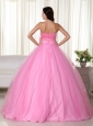 Pink Gown Sweetheart Floor-length Tulle Beading Quinceanera Dress