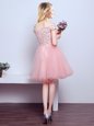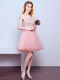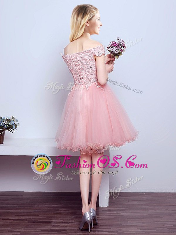 Pink Lace Up Off The Shoulder Beading and Lace Court Dresses for Sweet 16 Tulle Sleeveless
