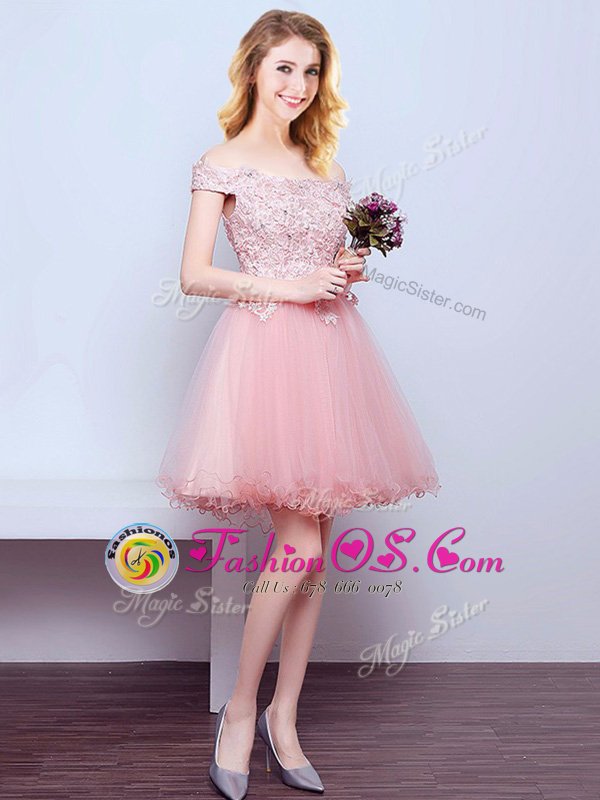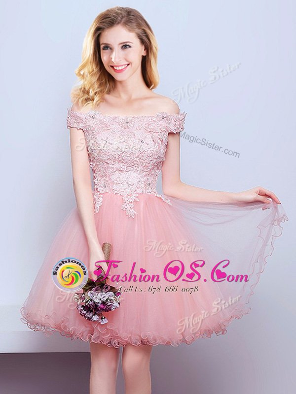 Home >  Special Occasion Dresses >  Cheap Dama Dresses > Pink Lace Up Off The Shoulder Beading and Lace Court Dresses for Sweet 16 Tulle Sleeveless