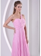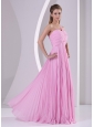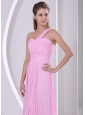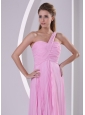 Pink One Shoulder Pleat Chiffon Empire Brush Train Bridesmaid Dress For Wedding Party