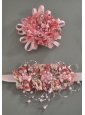 Pink Satin Ribbon and Net Flower With Pearls For Party