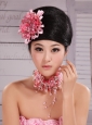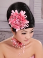 Home >  Accessories >  Headpieces > Pink Satin Ribbon and Net Flower With Pearls For Party