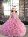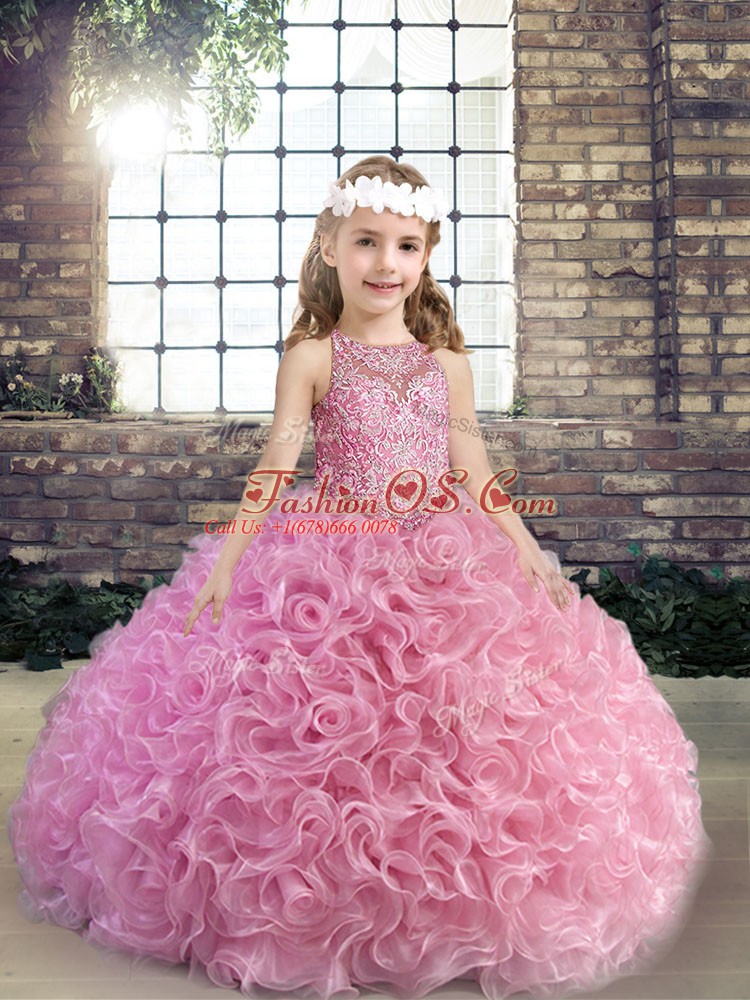 Pink Scoop Lace Up Beading Kids Pageant Dress Sleeveless