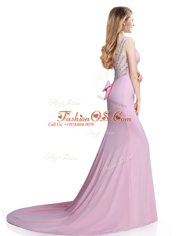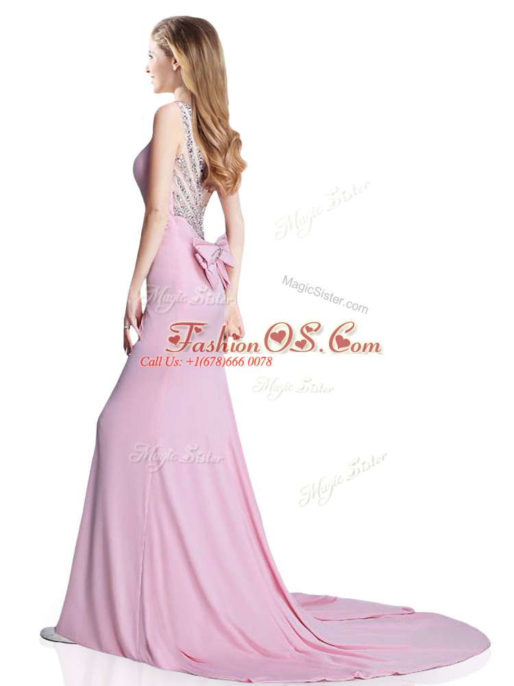 Home >  Prom Dresses >  Perfect Prom Dresses > Pink Scoop Neckline Beading and Bowknot Sleeveless Clasp Handle