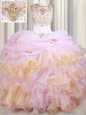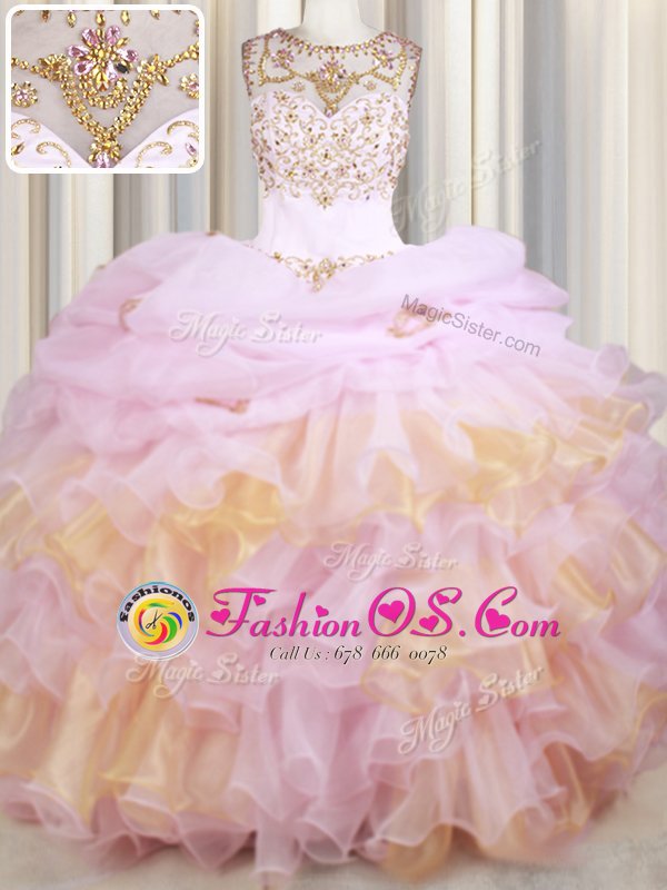 Pink Scoop Neckline Beading and Ruffles and Pick Ups Vestidos de Quinceanera Sleeveless Lace Up