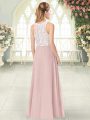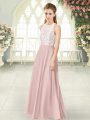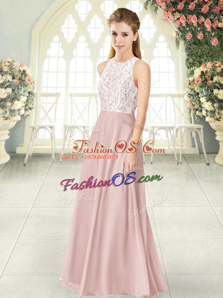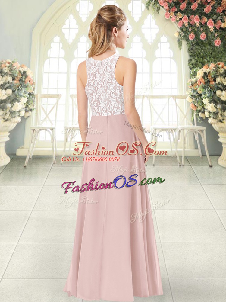 Pink Scoop Zipper Lace Prom Gown Sleeveless