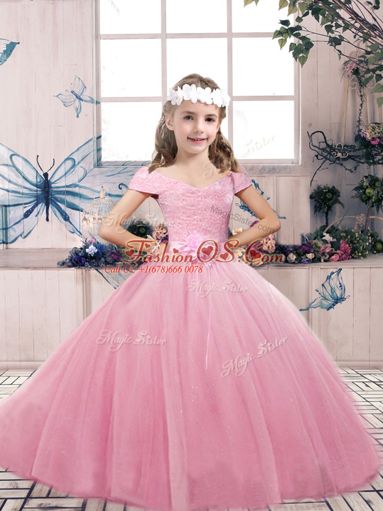 Pink Sleeveless Tulle Lace Up Little Girls Pageant Dress Wholesale for Party and Wedding Party