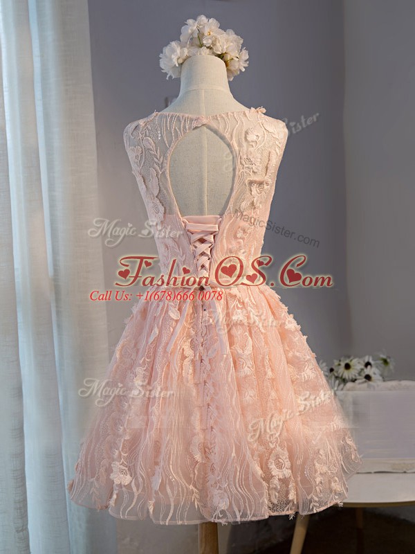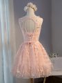 Pink Sleeveless Tulle Lace Up Prom Party Dress for Prom and Party and Beach