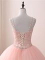 Pink Sleeveless Tulle Lace Up Quinceanera Dress for Sweet 16 and Quinceanera