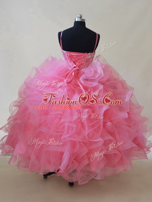 Pink Spaghetti Straps Neckline Beading and Ruffles Little Girls Pageant Dress Wholesale Sleeveless Lace Up