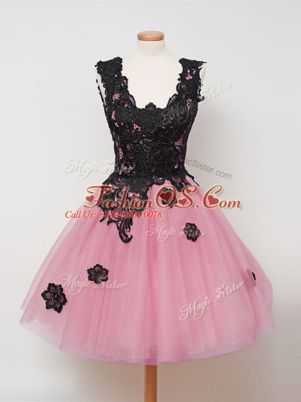 Pink Straps Neckline Lace Wedding Guest Dresses Sleeveless Zipper