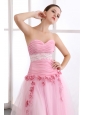 Pink Sweetheart Taffeta and Tulle Prom Dress with Appliques