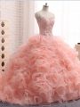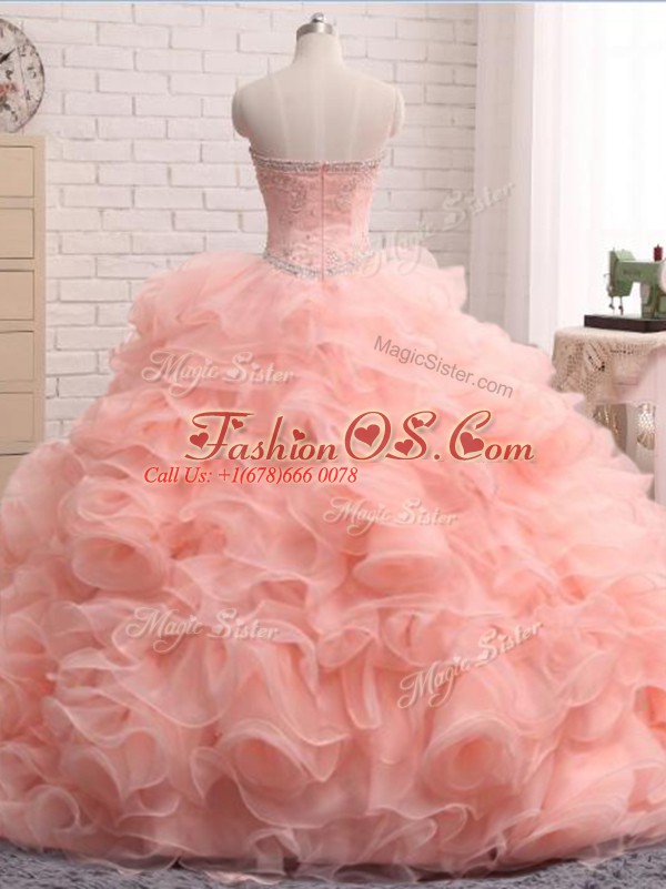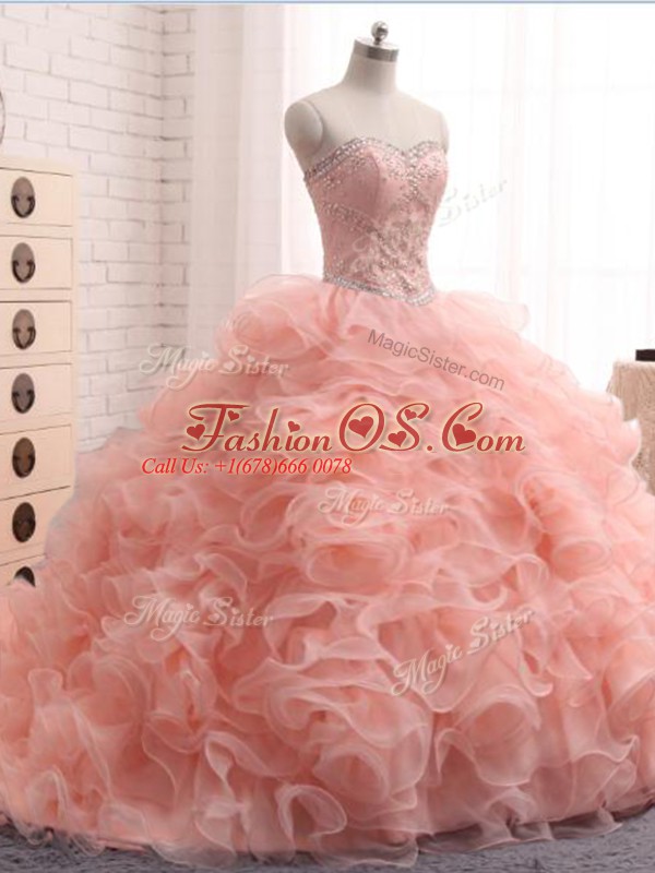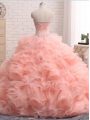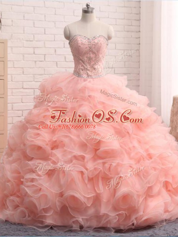 Pink Sweetheart Zipper Beading and Ruffles Quinceanera Dress Sleeveless