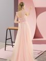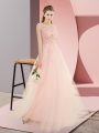 Pink Tulle Lace Up Prom Party Dress Sleeveless Floor Length Beading and Lace and Appliques