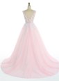 Home >  Prom Dresses >  Perfect Prom Dresses > Pink V-neck Neckline Appliques Prom Dresses Sleeveless Zipper