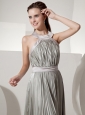 Pleat Decorate Halter Neckline Silver Prom Dress