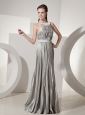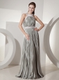 Home >  Prom Dresses >  Unique Prom Dresses > Pleat Decorate Halter Neckline Silver Prom Dress