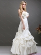 Pleated White Strapless Wedding Dresses with Ruffles and Pick Ups