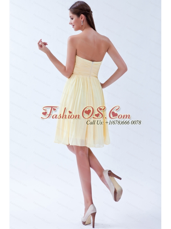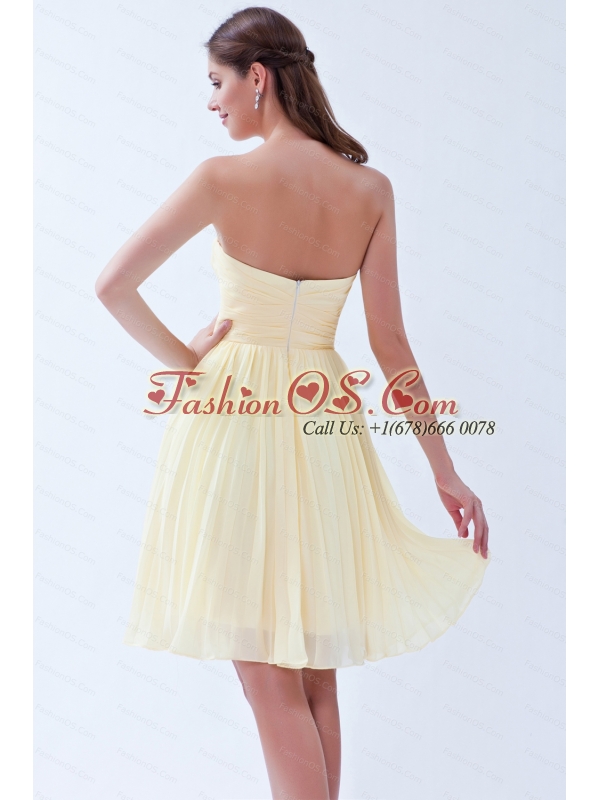 Pleats Sweetheart Light Yellow Knee-length Dama Dress