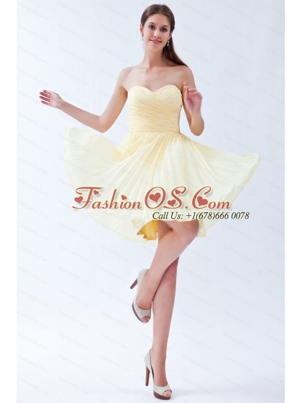 Home >  Special Occasion Dresses >  Dama Dresses for Quinceanera > Pleats Sweetheart Light Yellow Knee-length Dama Dress