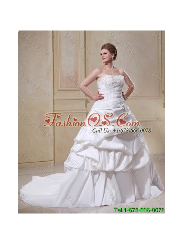 Plus Size A Line Strapless Appliques Wedding Dresses