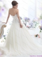 Plus Size Ruffled White Strapless Wedding Dresses with Sash and Bownot