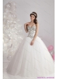 Plus Size Ruffled White Sweetheart Wedding Dresses with Brush Train and Rhinestone