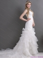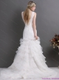 Plus Size V Neck 2015 Wedding Dress with Ruching and Ruffles