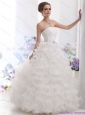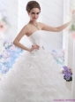 Plus Size White Strapless Ruffles and Ruching Wedding Gown for 2015
