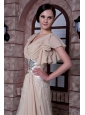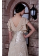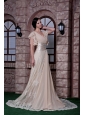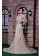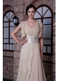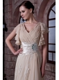 Popolar Champagne Prom Dress Empire V-neck Chiffon and Lace Beading Sweep Train