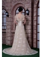 Home >  Prom Dresses >  Popular Prom Dresses > Popolar Champagne Prom Dress Empire V-neck Chiffon and Lace Beading Sweep Train