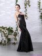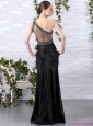 Popular 2015 One Shoulder Black Prom Dress with Beading