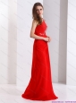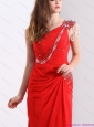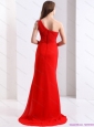Popular 2015 One Shoulder Red Prom Dress with Beadings and Brush Train