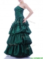 Popular A Line Ruched and Bubble Prom Dress in Hunter Green