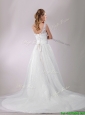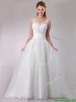 Popular A Line V Neck Court Train Beaded Wedding Dress in Tulle