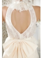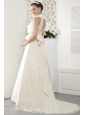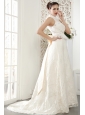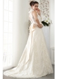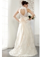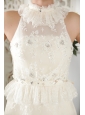 Popular A-line High-neck Brush Train Lace Beading and Ruch Wedding Dress