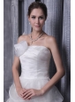 Popular A-Line / Princess Strapless Floor-length Organza and Taffeta Hand Flower Wedding Dress