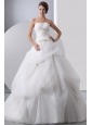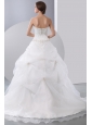 Popular A-line Strapless Appliques With Beading Ball Gown Wedding Dress Chapel Train Taffeta and Organza