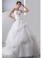 Home >  Wedding Dresses >  Ball Gown Wedding Dresses > Popular A-line Strapless Appliques With Beading Ball Gown Wedding Dress Chapel Train Taffeta and Organza