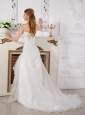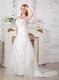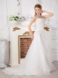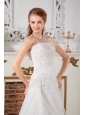 Popular A-line Strapless Wedding Dress Court Train Organza Lace