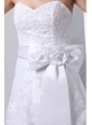 Popular A-line Sweetheart Hand Made Flower and Bow Wedding Dress Brush Train Taffeta and Lace